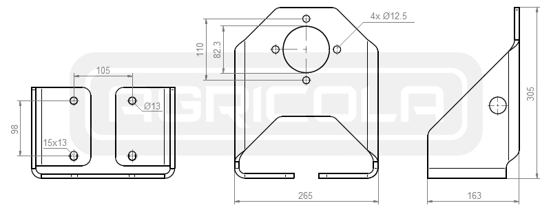 Veľmi pevná konzola. Odporúča sa na montáž veľkých prevodoviek so súpravou s výkonnými čerpadlami skupiny 3 (30) s kapacitou viac ako 26 cm3/ .