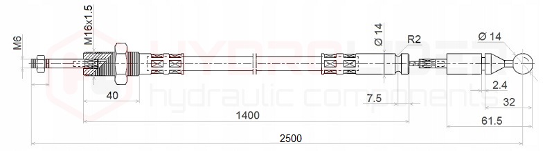 2500 mm dlhé lanko na ovládanie hydraulického rozdeľovača pomocou joysticku. Kábel sa hodí do rozdelovačov Badetnost, Galtech