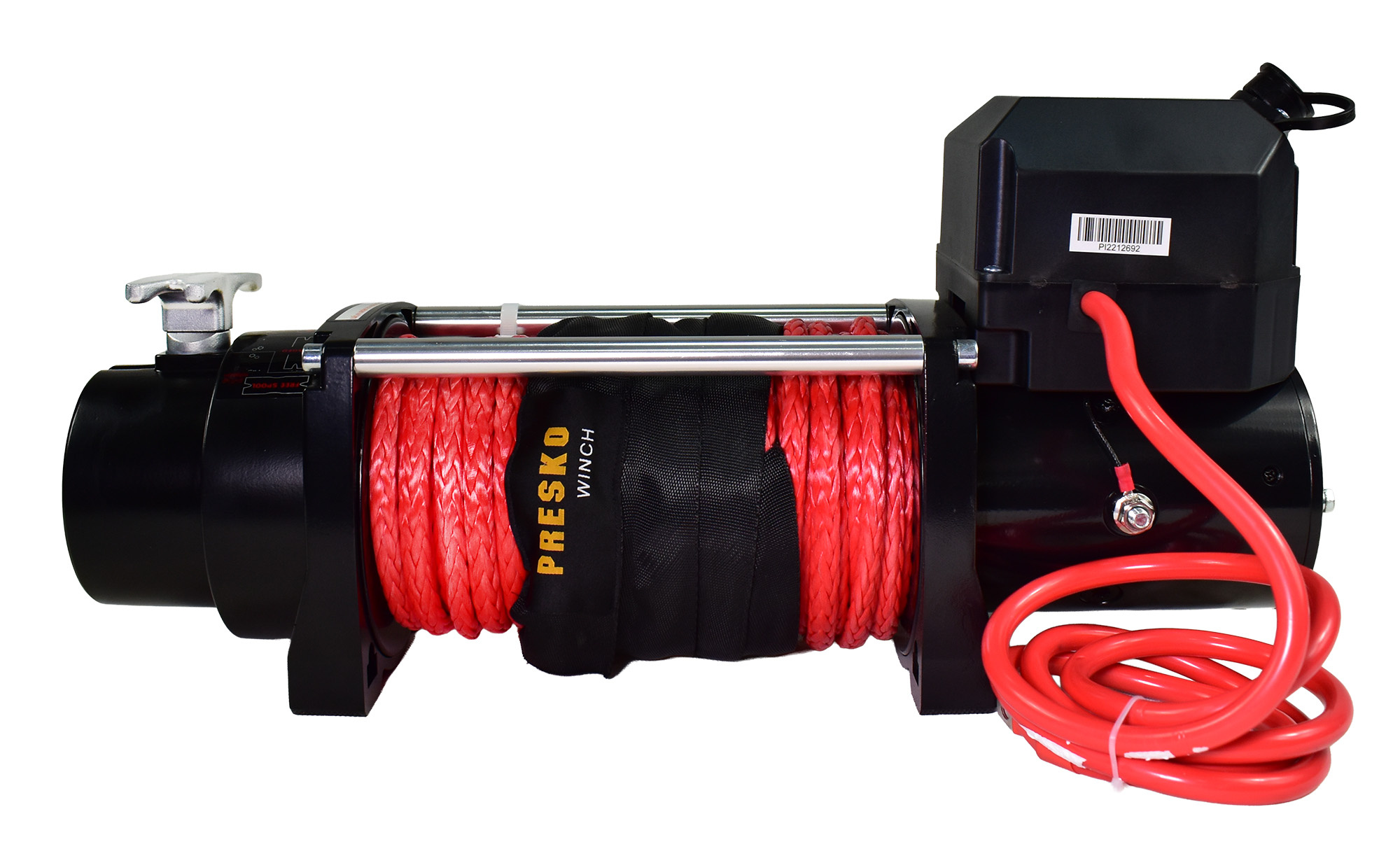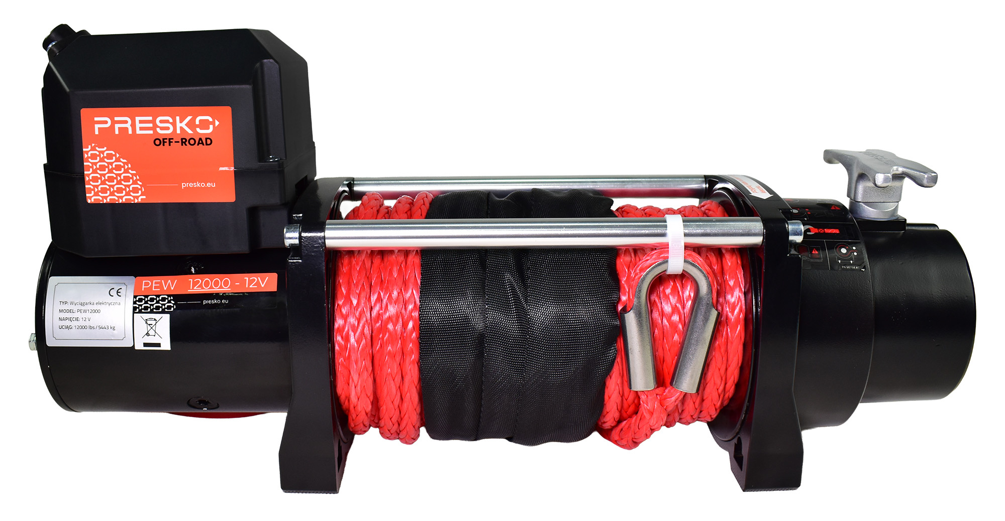 Presko Winch elektrický navijak 12000 libier so syntetickým lanom. Je ideálny pre úžitkové vozidlá, terénne vozidlá, asistenčné služby pri ceste a odťahové vozidlá. Produkt podobný ako: DWM 12000, DHW 12000, PW 12000.