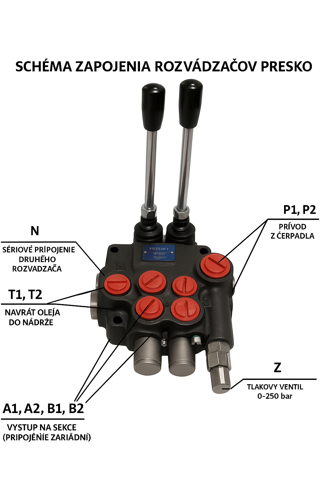 Vďaka použitiu vsuvky dokážeme efektívne spojiť dva hydraulické rozvádzače do série.